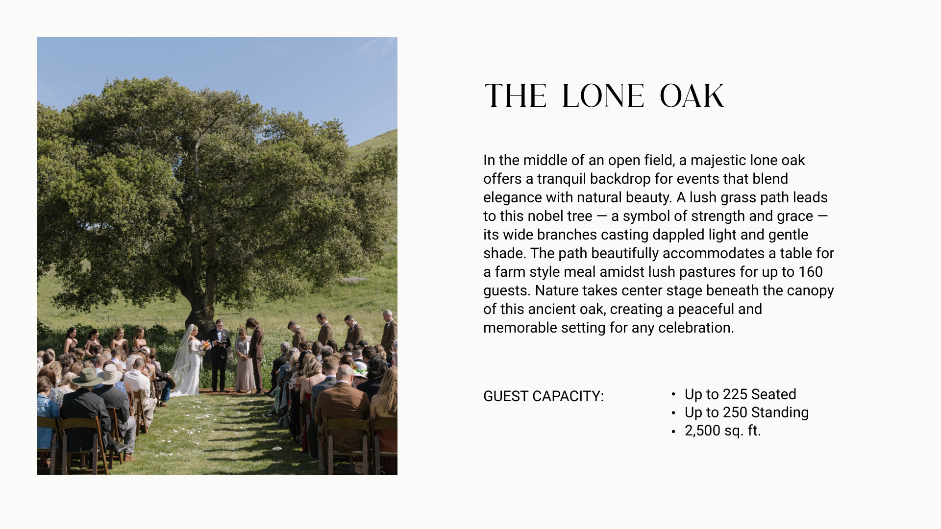 Whether you envision an intimate ceremony beneath the ancient oaks or a grand reception under the stars, our estate offers: